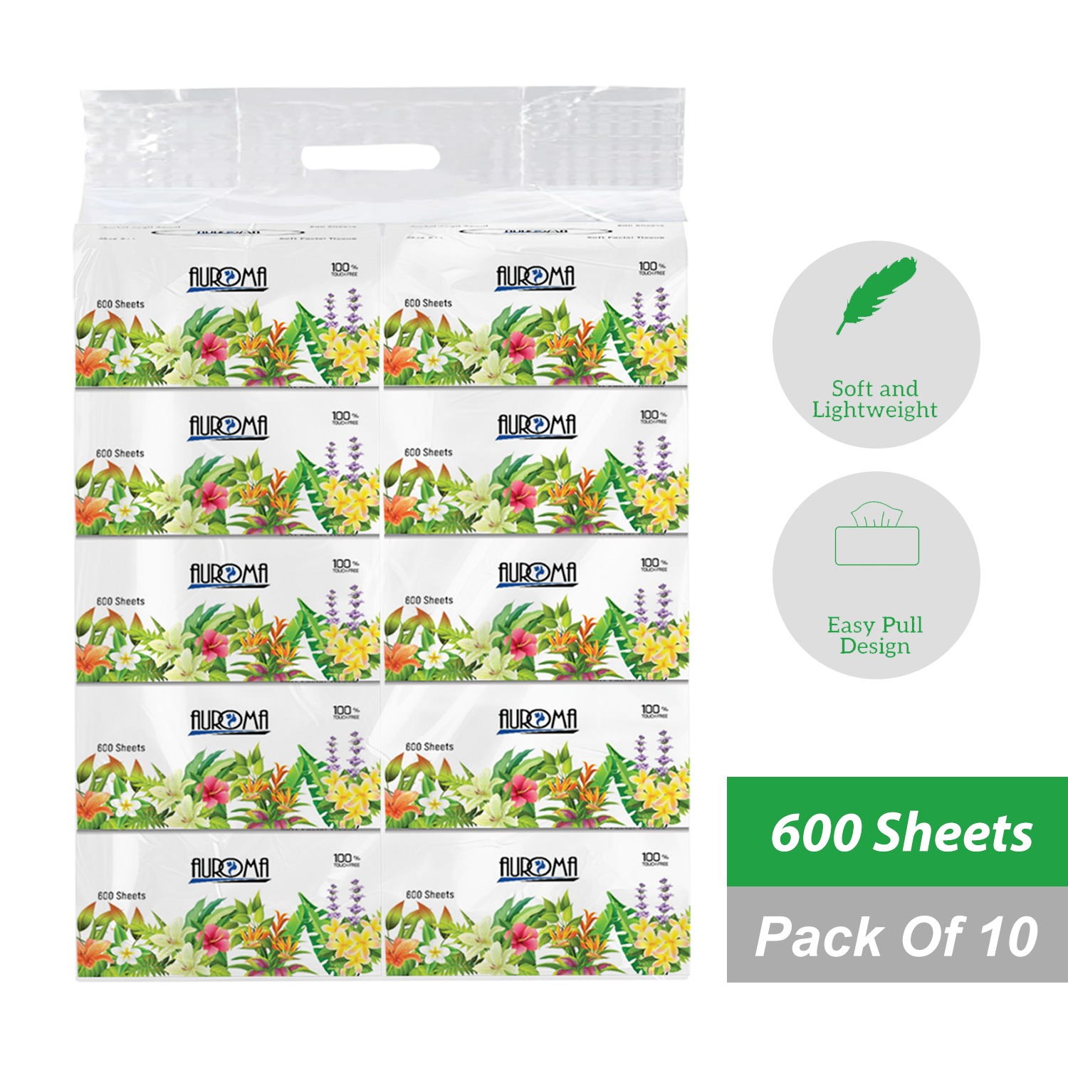 Auroma Facial Tissue Pack of 40 offers ultra-soft, skin-friendly tissues perfect for everyday use. These high-quality facial tissues are gentle on sensitive skin and ideal for home, office, travel, or car use. Designed for comfort and hygiene, Auroma tissues provide excellent absorbency while remaining soft and smooth.